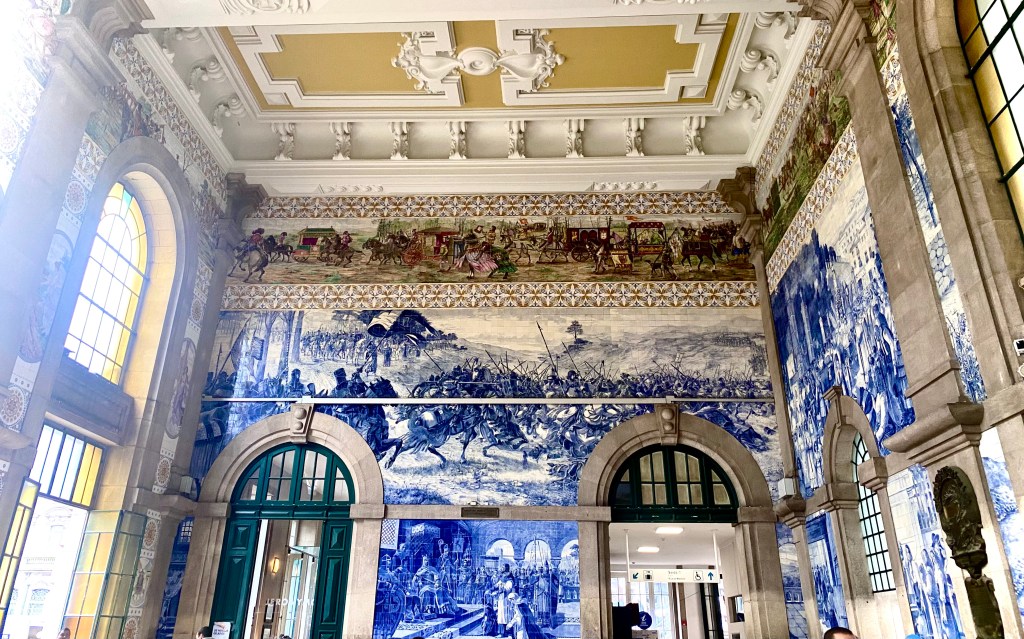 Esta estación fue un gran descubrimiento en la ciudad de Oporto y que recomiendo su visita. La Estación se construyó sobre los restos del convento de San Bento y su rasgo más característico son los 20.000 azulejos que decoran sus paredes y en los que se relatan hechos de la historia de Portugal. Hay una leyenda alrededor de esta estación que cuenta que, para construir la estación, tuvieron que esperar a que todas las monjas del convento murieran y eso supuso una larga espera y nada más morir esta última monja empezaron a construir la estación. Cuenta la leyenda que en las horas de menos movimiento de pasajeros, se puede ver a la última monja del convento recorriendo los pasillos de la estación.