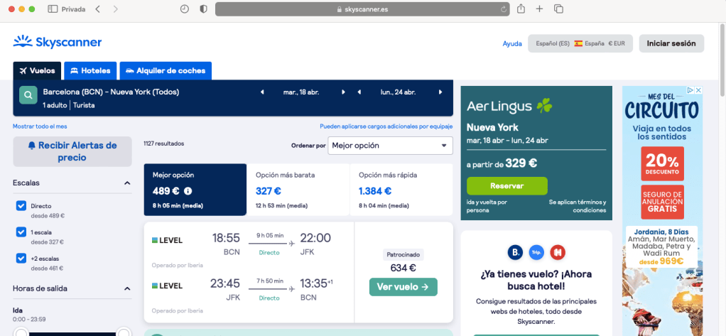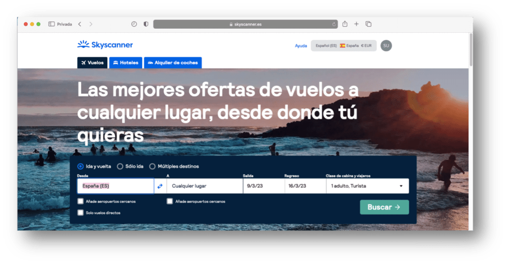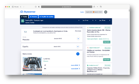 Os pondré un ejemplo en el buscador Skyscanner: