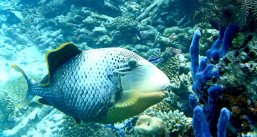 En el último día de actividades los que no éramos buceadores titulados, nos ofrecieron la posibilidad de contratar una excursión extra a dos lugares llenos de fauna marina; concretamente fish tank y secret point. Ambos lugares fueron una experiencia espectacular porque estuvimos en contacto directo de nuevo con los animales marinos; y esta vez, estuvimos todo el día completamente solos, sin más barcos. En estos lugares pudimos ver rallas, peces de colores, tiburones de punta negra, más tiburones nodriza y algún que otro pez ballesta (os voy a poner la foto para que lo identifiquéis porque este pez puede parecer inofensivo, pero ataca, así que ¡cuidado!).