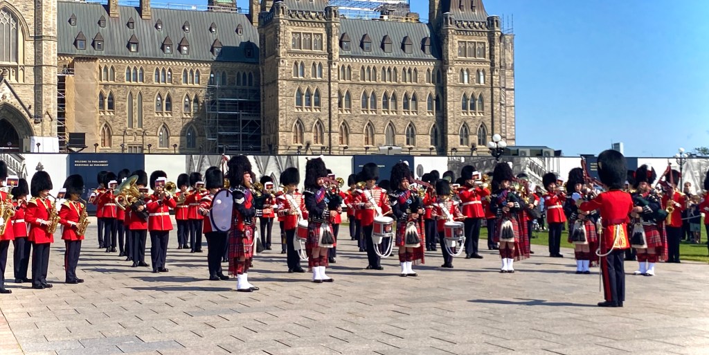 Muy importante a tener en cuenta; cada día a las 10 de la mañana, delante de los edificios del Parlamento se hace un cambio de guardia que incluye un número musical interpretado por los propios soldados. El vestuario de los guardias recuerda mucho al de los guardias del Palacio de Buckingham y eso es porque Canadá forma parte de la Commonwealth y es un homenaje a los guardias de los reyes de Inglaterra.